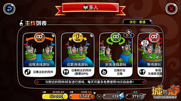 好玩的手游最大的乐趣就是,能和一群小伙伴们一起玩。在这方面,《城与龙》考虑得十分周全,《城与龙》支持单人、多人、奖杯赛等多种战斗模式,并且支持远程连线游玩、近距离连线游玩、好友连线游玩等多种模式,可以让你无时无刻都可以找到朋友一起对战。