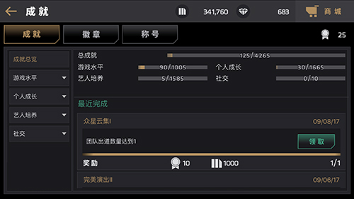 本次新增的成就功能,相当于福利反馈,即在游戏过程中达到一定成就就可以获得各种丰厚的奖励。当一个个小成就达成时即可解锁徽章。