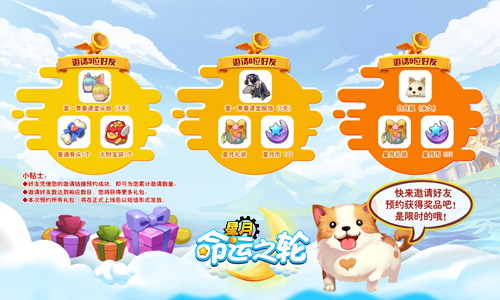 作为一款萌系社交手游,除了战斗之外,与好友共同环游星月大陆培养感情也是《星月-命运之轮》的重要环节,所以在预约期间,只要小可爱们在限定时间内邀请好友参与预约,就能够获得超萌的游戏时装以及永久精灵骑宠哦!