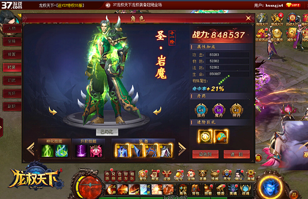 彰显个性风采,酷炫百变换装。37《龙权天下》时装玩法给你与众不同的魅力秀场。风格迥异的造型,丰富多样的服饰搭配,靓丽、妖娆、潇洒、狂野,激活时装神化技能、属性培养,让你实力与颜值双重出彩,一起来围观!