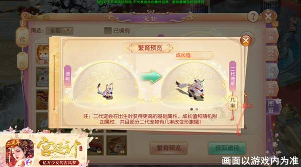 两周年期间,全新萌宠——谛听来袭,别看此时的它看上去像一只人畜无害模样的喵星人,进化二代后却会变成“听世间万物,辨人言真假”的威风神兽,小主们想拥有它吗?此外,周年庆新坐骑“鹊咏琅华卷”也同步上线,小主可踏在山水画卷之上,随风缓缓浮动,看遍大楚万千风光。