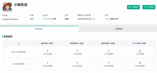 《小森生活》在台湾地区上线后,斩获了台湾地区iOS免费榜和休闲游戏榜第一,结合近期动森的火爆来看,再次印证休闲品类的市场潜力。
