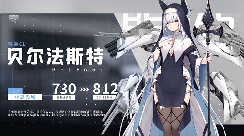 贝尔法斯特是《苍蓝誓约》中稀有度级别为SSR的轻巡战姬,她的技能使其进入夜战后的第一次主炮攻击命中时,向目标所在区域发射持续一段时间的照明弹,以此来降低敌舰的闪避以及提高自身暴击率;进入战斗后的贝尔法斯特能够获得一颗额外的鱼雷,且她的雷击伤害得到一定提高。