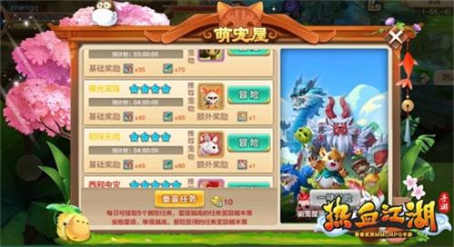 家园中新增的宠物屋,可以把豪侠已拥有的宠物汇集在此。每日系统会根据当前萌宠屋建筑等级,在对应的任务库里随机取多个任务,玩家可根据宠物情况给他们分配不同的冒险任务,完成任务即可收获不同的奖励。4级宠物屋更可开启一键冒险模式,战斗之外给宠物多赋予一层权利,多一次历练机会。