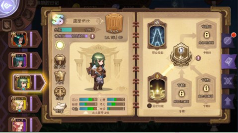 配置技能:这个游戏每个英雄在抽出来的时候就会有两个固定技能,这两个技能是能直接带进地牢的。随着英雄进阶,会激活技能槽,这个时候可以给他配置新的技能卡,这种自己添加的技能卡需要在地牢里抽到才能使用。所以一个英雄的技能好不好,初始技能起到一半的决定作用,毕竟不是谁都有信心在地牢里一定会抽到某个技能,只有带进去的才是最保险和最稳定的。提供配置的技能卡里,每张只能配置给一个英雄,如果某英雄已经配置了,其它英雄就无法配置改技能。 这个问题不大,最多就少一层效果。但隐隐感觉,配置了的技能在副本里遇到的概率会比一般没配置的高,这点我暂时也没有证据,只是感觉。