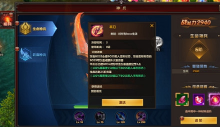神兵激活:有可激活神兵,页面左下角会有提示,点击查看即可查看神兵的激活条件,根据要求完成每一个任务,任务完成后即可解封神兵。