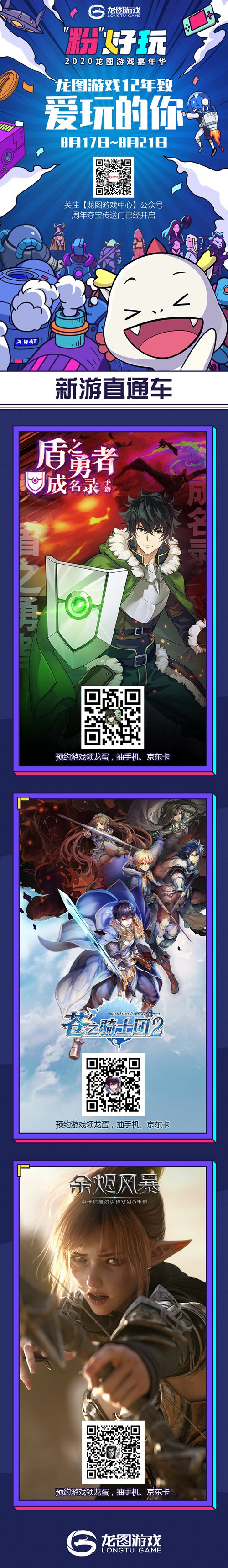 在8月20日晚18:00点整,龙图游戏嘉年华直播活动将会开启,在活动中,将会爆料龙图游戏旗下工作室正在研发的三款游戏的最新动向,其间,也邀请到了三个游戏的特邀嘉宾参加直播活动。到时候大家不仅可以与可爱的小姐姐互动,也可以与制作人中路对线!