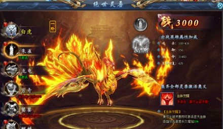 功能开启后,点击右上的“绝世灵兽”图标即可打开绝世灵兽界面。绝世灵兽为全体出战英雄提供属性加成。