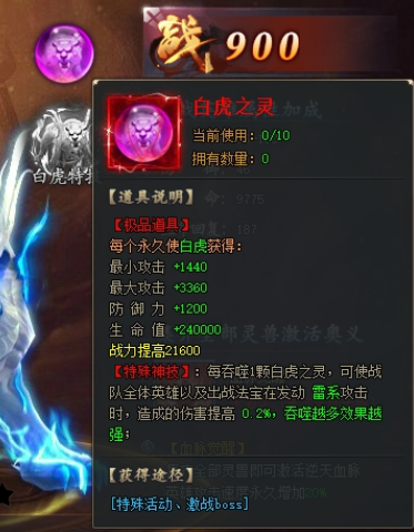 激活全部灵兽后,金额激活奥义。永久提升英雄攻击速度。