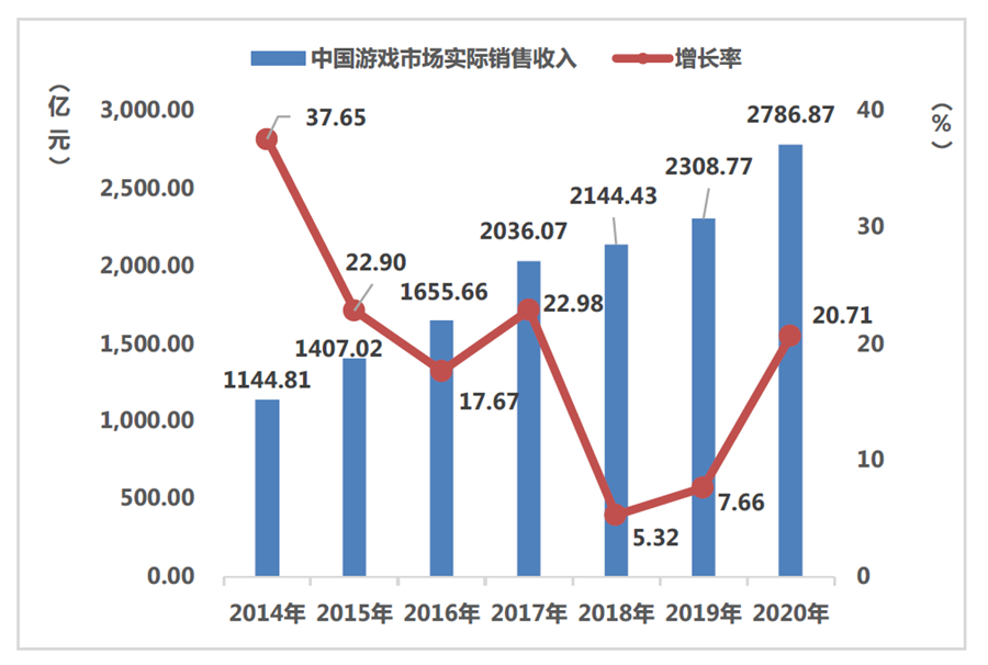 中国游戏市场实际销售收入及增长率